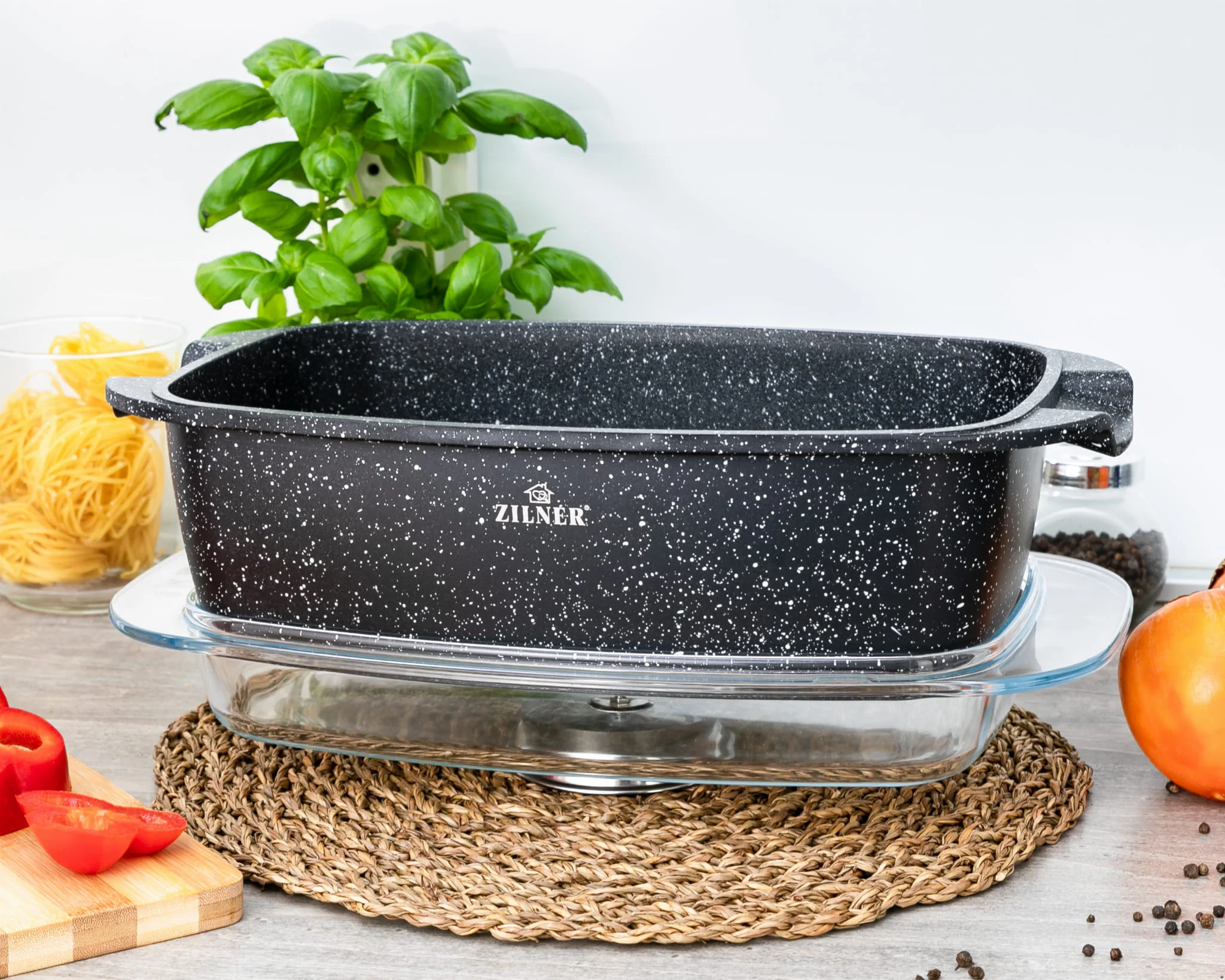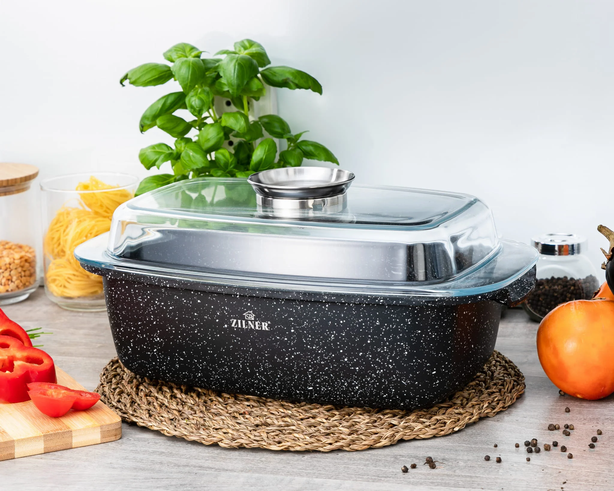 Brytfanna ceramiczno-marmurowa ZL- 7013 to klucz do odkrycia sekretów doskonałego pieczenia. Składa się z głębokiego naczynia o optymalnej średnicy i wysokości oraz solidnej, żaroodpornej pokrywy, zapewniając komfort podczas wkładania składników oraz kontrolowania procesu pieczenia. Dzięki specjalnej, 5-warstwowej konstrukcji szybko się nagrzewa i doskonale utrzymuje ciepło, co przekłada się na oszczędność energii.