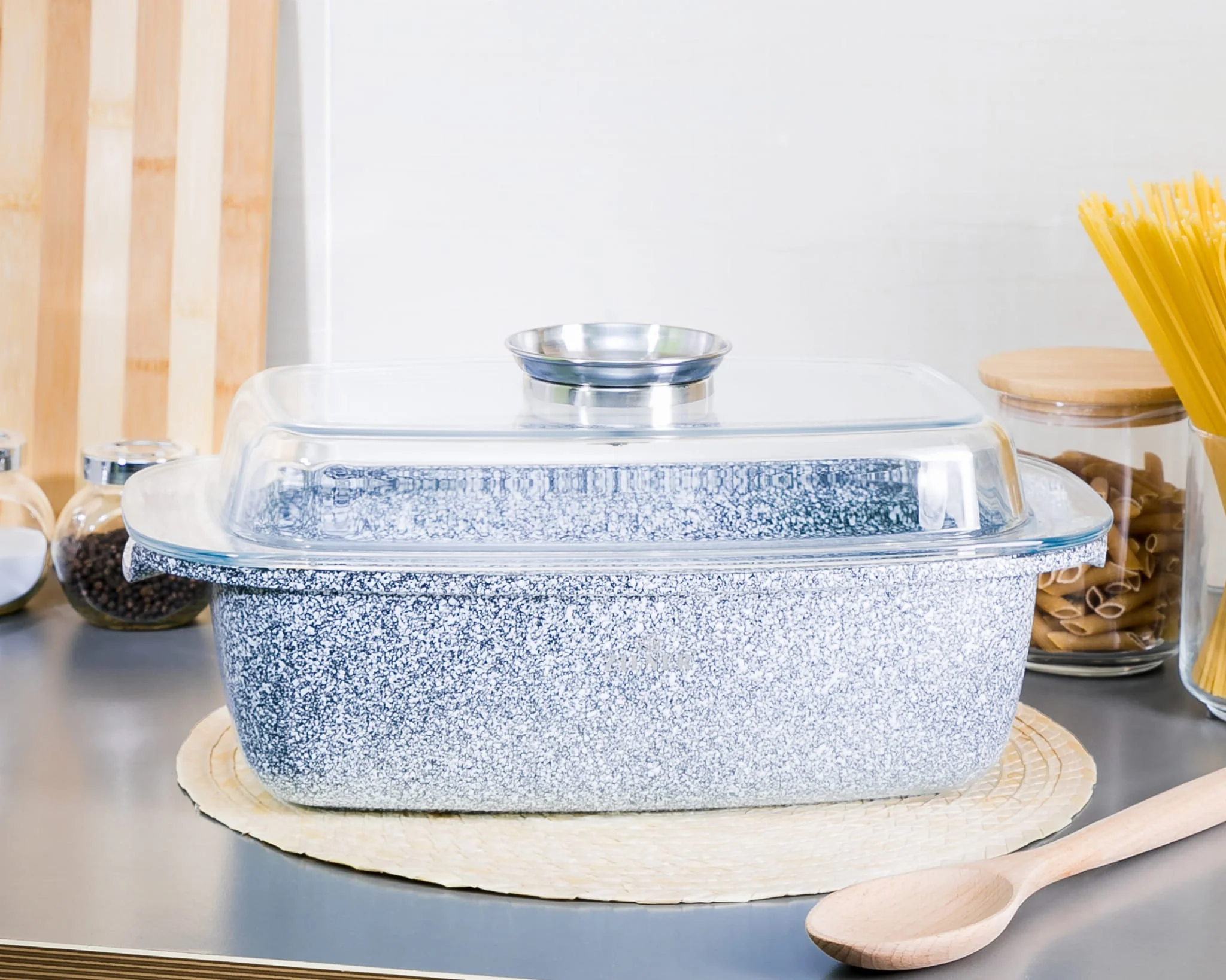 Brytfanna ceramiczno-marmurowa ZL- 7075 to klucz do odkrycia sekretów doskonałego pieczenia. Składa się z głębokiego naczynia o optymalnej średnicy i wysokości oraz solidnej, żaroodpornej pokrywy, zapewniając komfort podczas wkładania składników oraz kontrolowania procesu pieczenia. Dzięki specjalnej, 5-warstwowej konstrukcji szybko się nagrzewa i doskonale utrzymuje ciepło, co przekłada się na oszczędność energii.