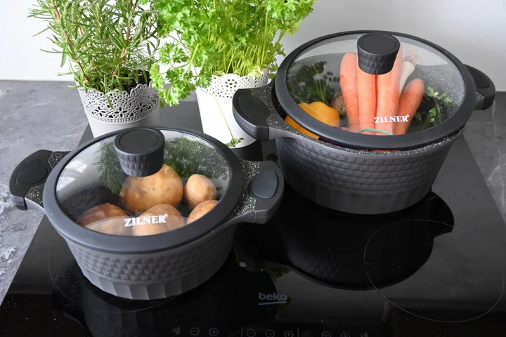 Zestaw garnków ZILNER ZL-8514 z łatwością wprowadzi Cię w świat wygodnego i efektywnego gotowania. Składa się z 3 garnków o optymalnej średnicy i wysokości, patelni oraz rondla co umożliwia komfortowe wkładanie, mieszanie i wykładanie żywności. Dzięki grubemu 5-warstwowemu dnu szybko się nagrzewają i długo utrzymują ciepło, co przekłada się na oszczędność energii i pieniędzy.