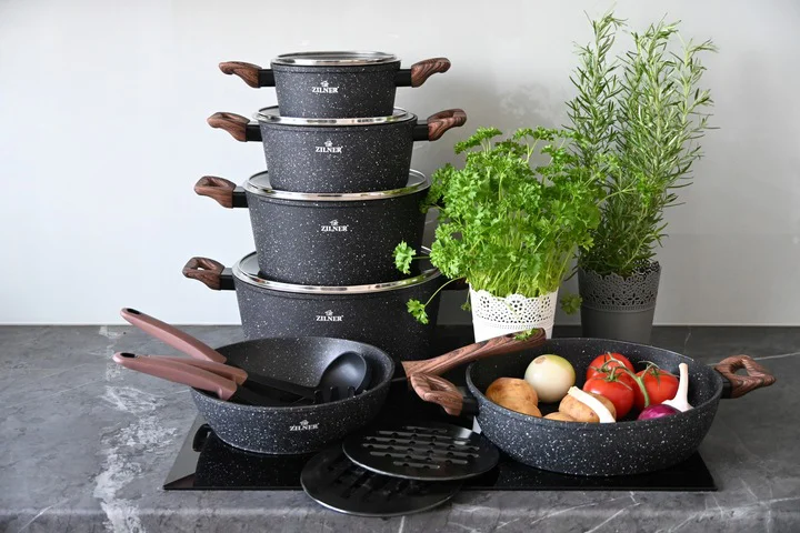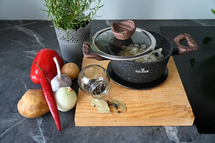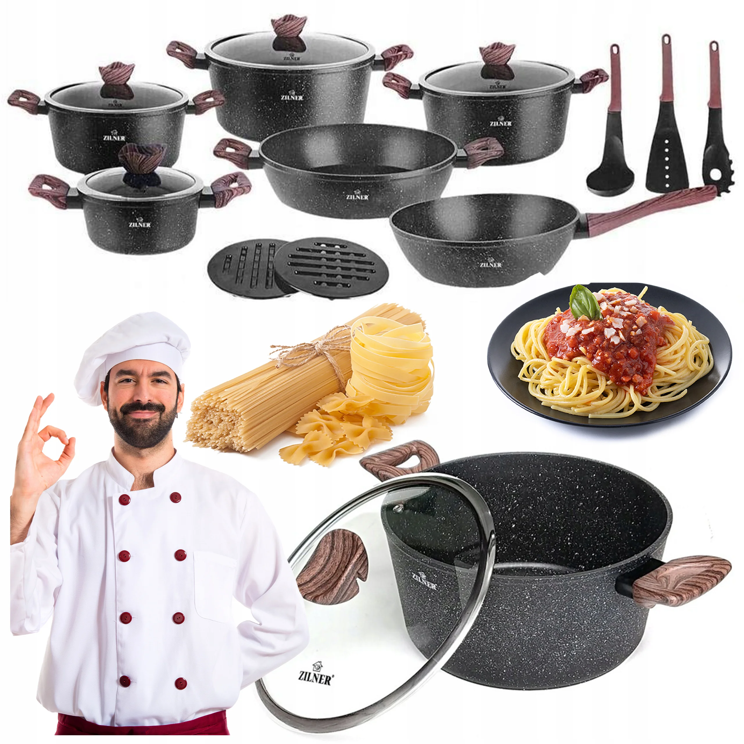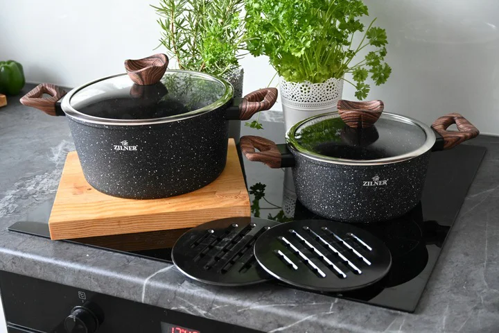 Zestaw garnków ZILNER ZL-8518 z łatwością wprowadzi Cię w świat wygodnego i efektywnego gotowania. Składa się z 4 garnków o optymalnej średnicy i wysokości oraz dwóch patelni umożliwia komfortowe wkładanie, mieszanie i wykładanie żywności. Dzięki grubemu 5-warstwowemu dnu szybko się nagrzewają i długo utrzymują ciepło, co przekłada się na oszczędność energii i pieniędzy.