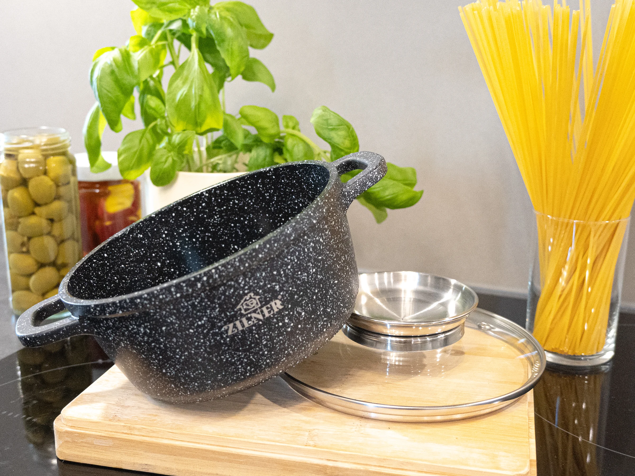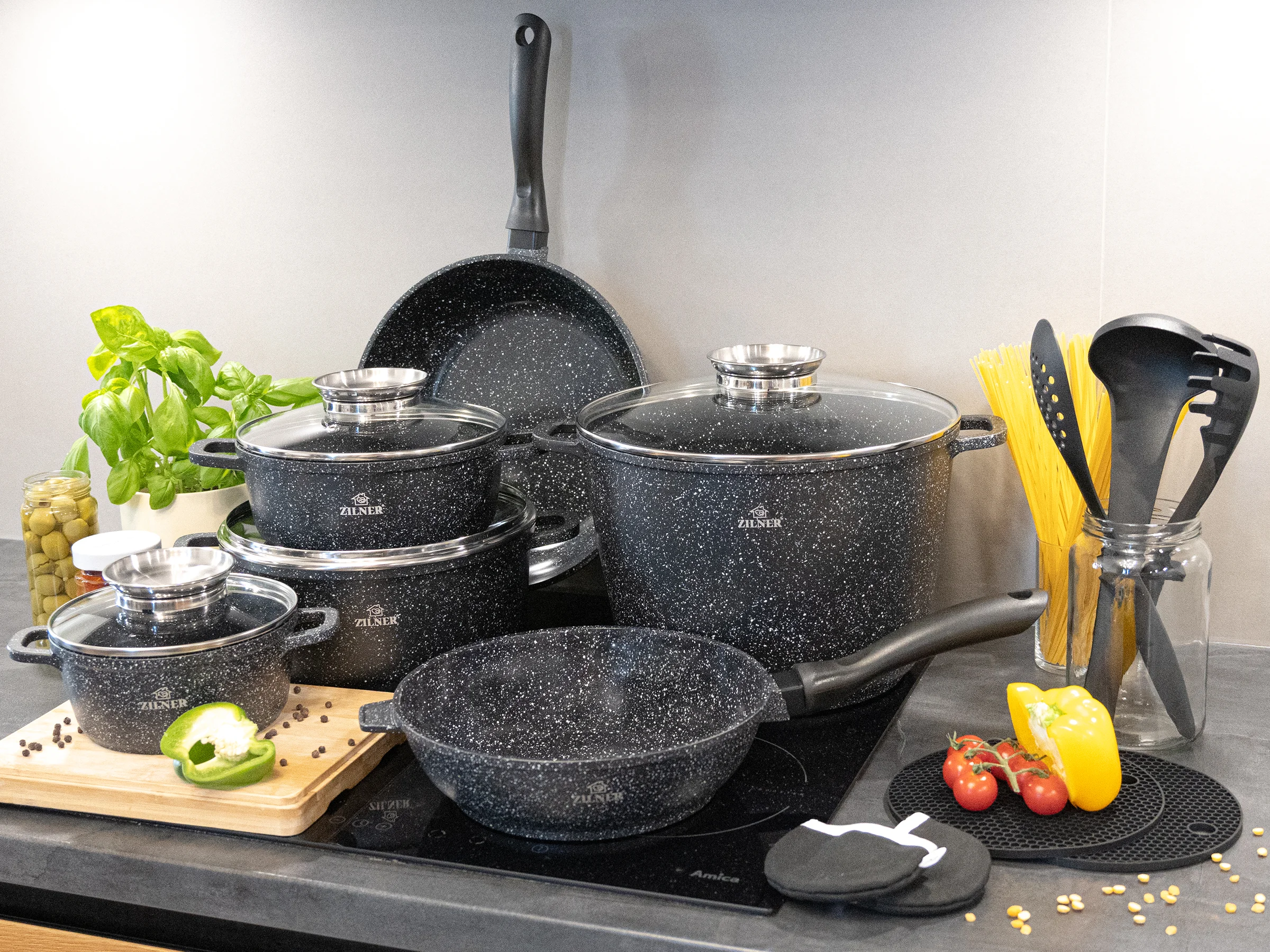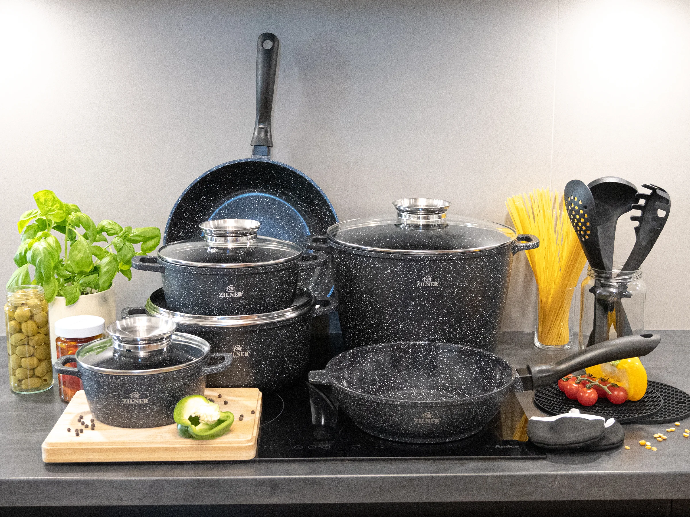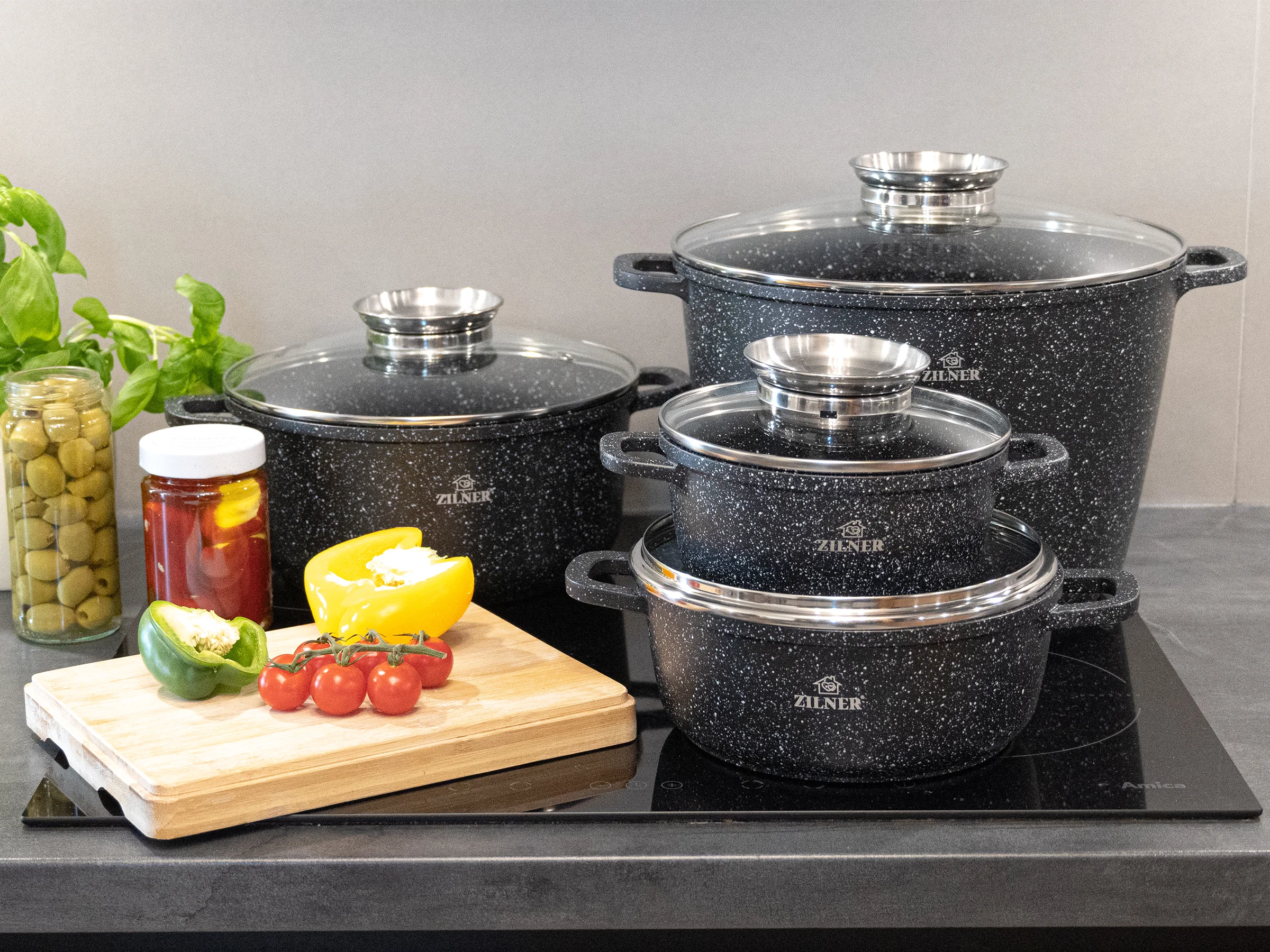 Zestaw garnków ZILNER ZL-8536 z łatwością wprowadzi Cię w świat wygodnego i efektywnego gotowania. Składa się z 4 garnków o optymalnej średnicy i wysokości oraz dwóch patelni co umożliwia komfortowe wkładanie, mieszanie i wykładanie żywności. Dzięki grubemu 5-warstwowemu dnu szybko się nagrzewają i długo utrzymują ciepło, co przekłada się na oszczędność energii i pieniędzy.