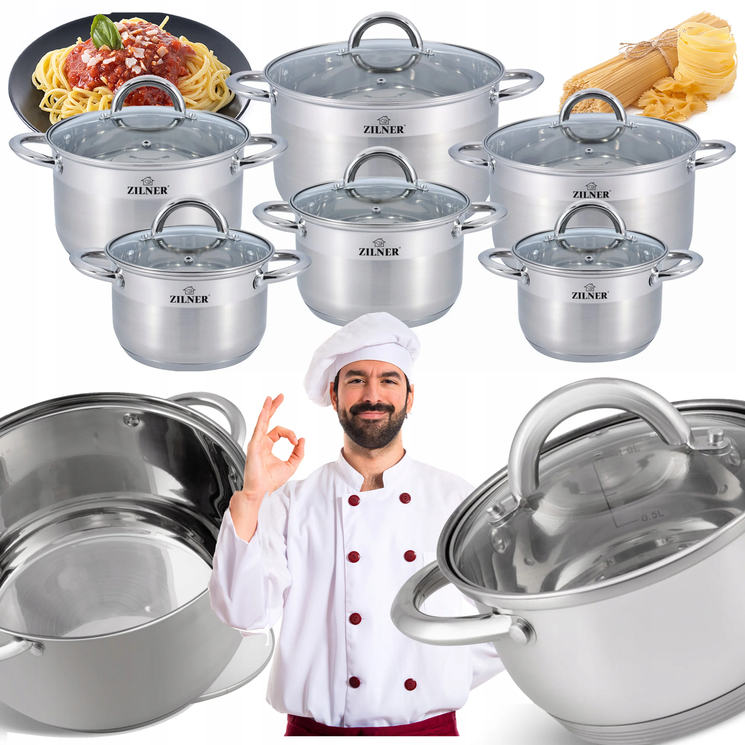 Zestaw garnków ZILNER ZL-8109 z łatwością wprowadzi Cię w świat wygodnego i efektywnego gotowania. Składa się z 6 garnków o optymalnej średnicy i wysokości co umożliwia komfortowe wkładanie, mieszanie i wykładanie żywności. Dzięki grubemu 5-warstwowemu dnu szybko się nagrzewają i długo utrzymują ciepło, co przekłada się na oszczędność energii i pieniędzy.