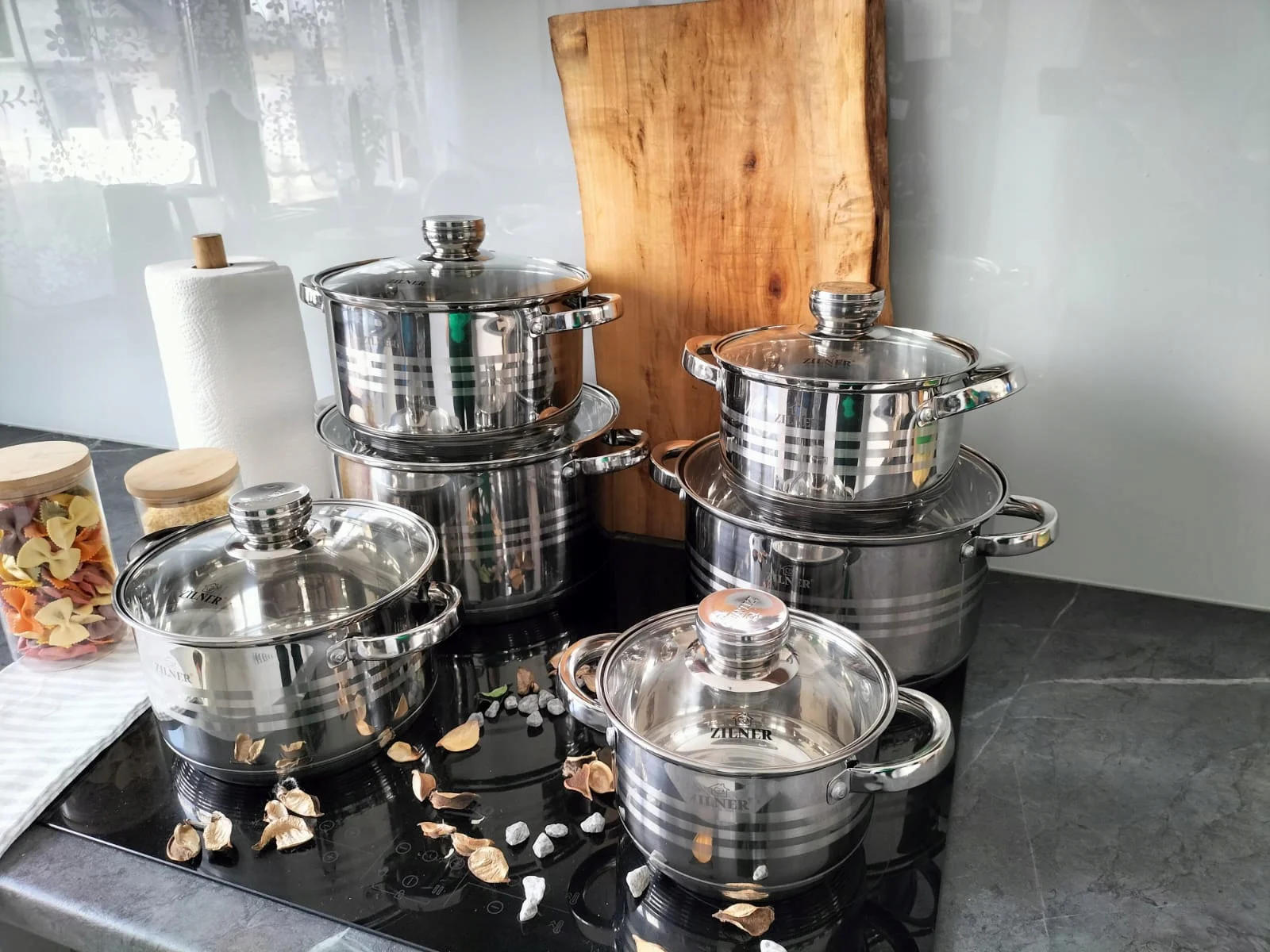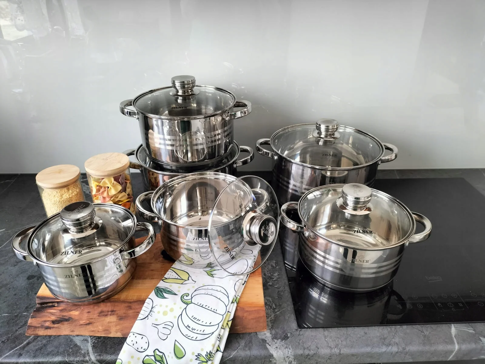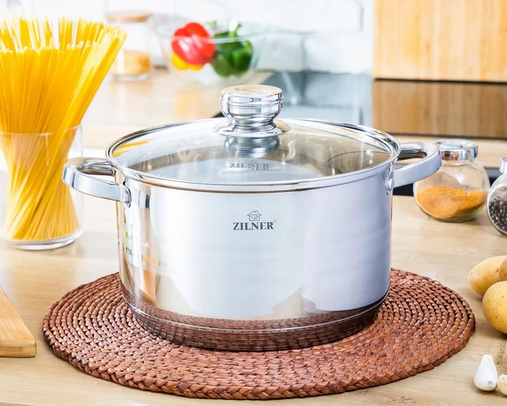 Zestaw garnków ZILNER ZL-8123 z łatwością wprowadzi Cię w świat wygodnego i efektywnego gotowania. Składa się z 6 garnków o optymalnej średnicy i wysokości co umożliwia komfortowe wkładanie, mieszanie i wykładanie żywności. Dzięki grubemu 9-warstwowemu dnu szybko się nagrzewają i długo utrzymują ciepło, co przekłada się na oszczędność energii i pieniędzy.