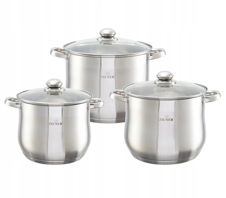 Zestaw garnków ZILNER ZL-7350 z łatwością wprowadzi Cię w świat wygodnego i efektywnego gotowania. Składa się z 3 garnków o optymalnej średnicy i wysokości co umożliwia komfortowe wkładanie, mieszanie i wykładanie żywności. Dzięki grubemu 5-warstwowemu dnu szybko się nagrzewają i długo utrzymują ciepło, co przekłada się na oszczędność energii i pieniędzy.